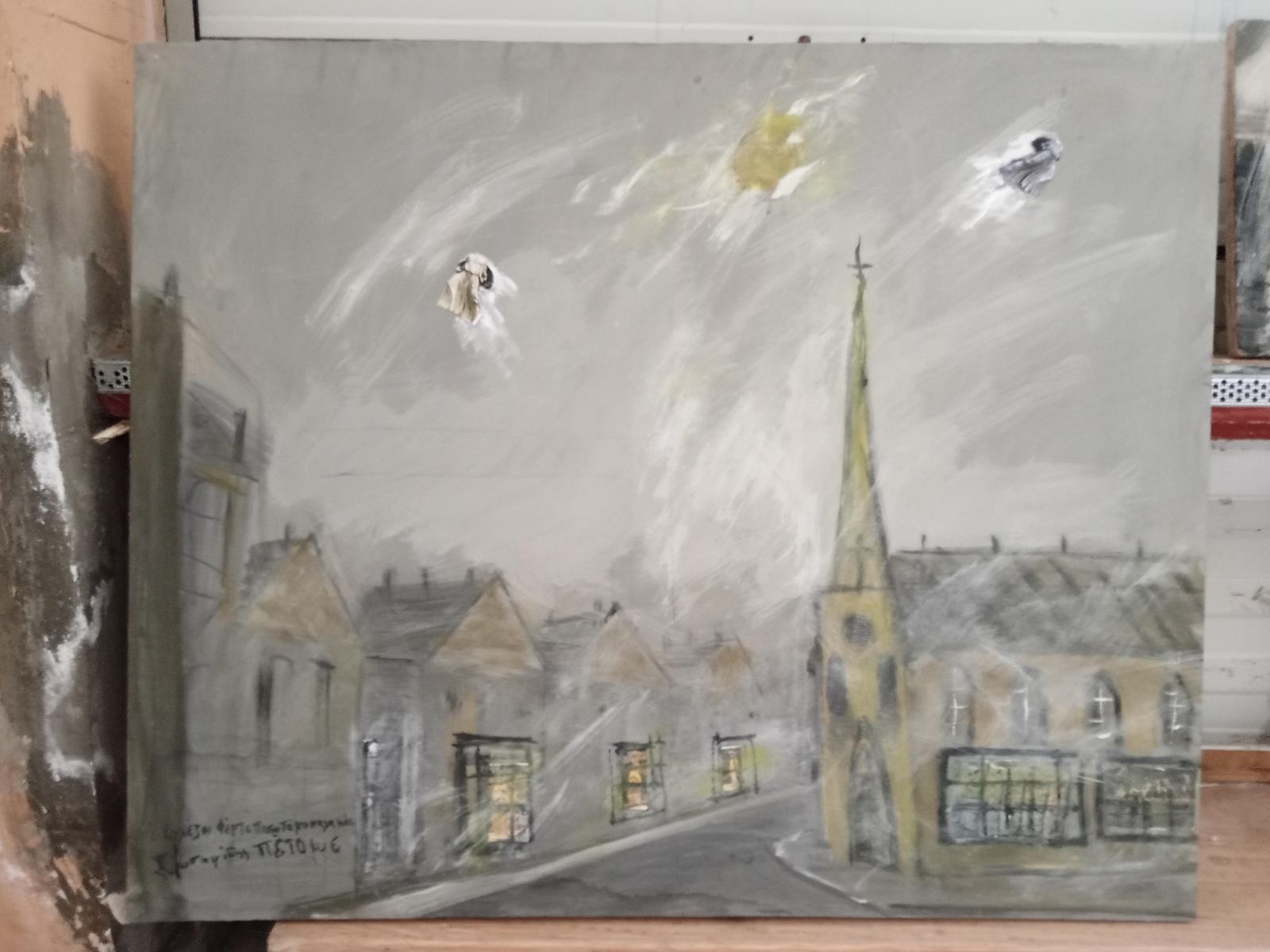 Ο ζωγράφος Σωτήρης Ιωσηφίδης μέλος ΕΕΤΕ, ατελιέ “ΕΓΏ” , Ρίο Πατρών οδός Σώμερσετ 13.